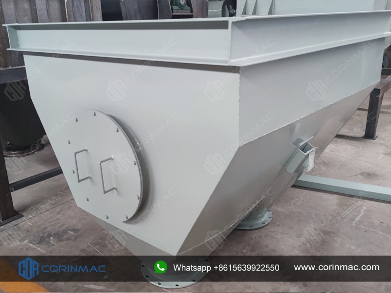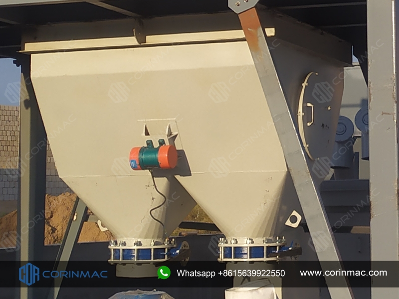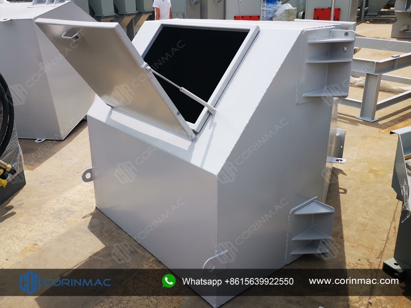 The finished product hopper is a closed silo made of alloy steel plates for storing mixed products. The top of the silo is equipped with a feeding port, a breathing system and a dust collection device. The cone part of the silo is equipped with a pneumatic vibrator and an arch breaking device to prevent the material from being blocked in the hopper.