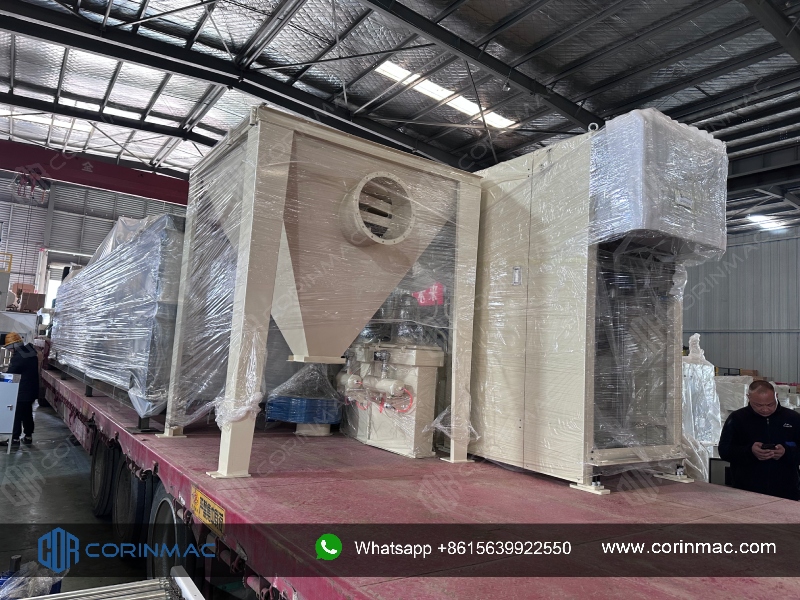 Event: On March 3, 2026, the complete set of dry mortar production line equipment shipped by CORINMAC to Russia has successfully completed full-process testing and protection and is ready for shipment! The semi-automatic packaging machine, pallet wrapping machine, screw conveyor, inclined belt conveyor, dust collecting press conveyor, as well as core equipment such as dry mortar mixer, finished product hopper, ton bag un-loader, impulse bags dust collector and control cabinet were loaded onto the truck and will soon travel across the ocean to be put into production, injecting professional intelligent manufacturing power into the local industrial upgrading!